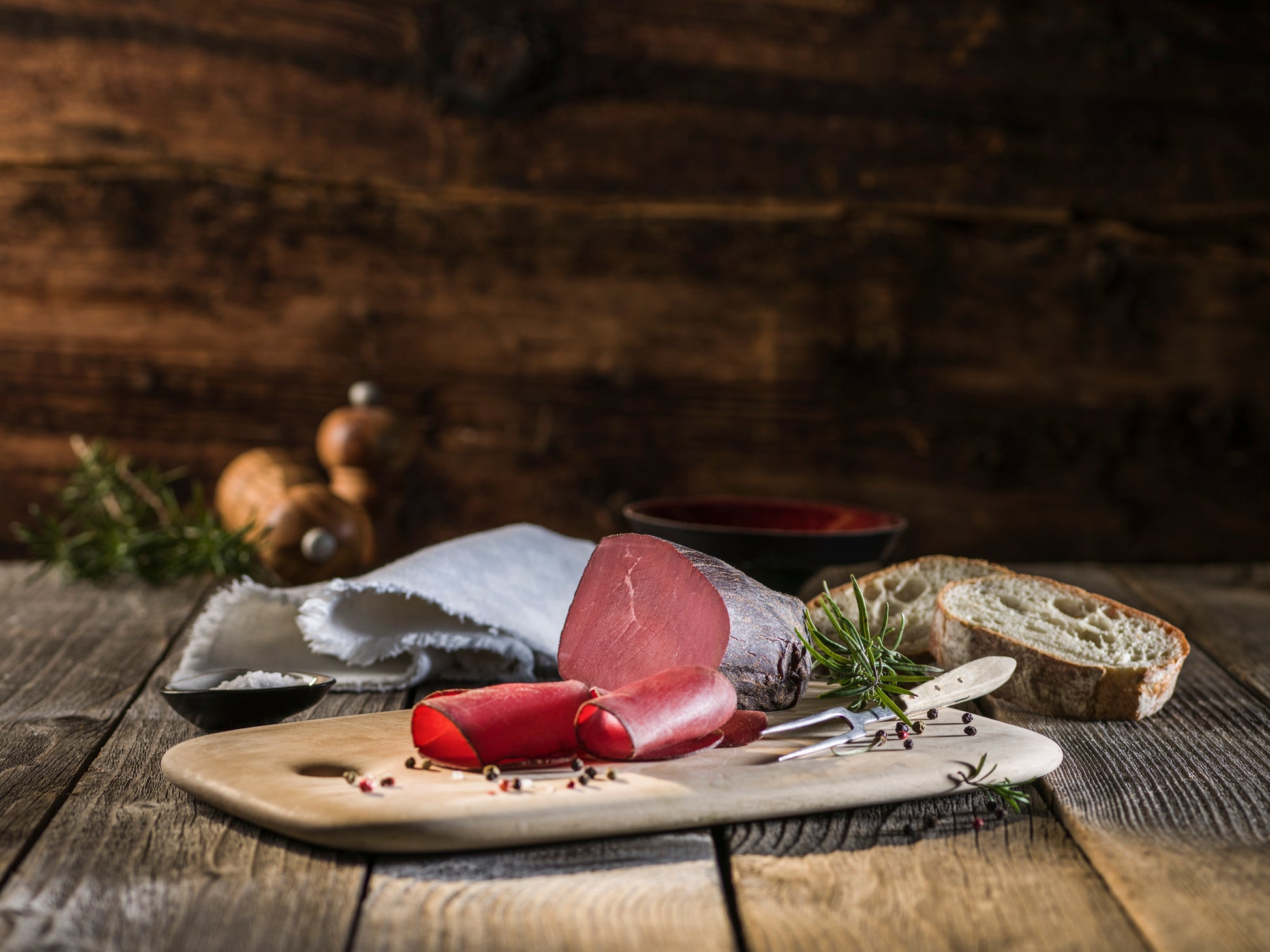 Diese auserlesene Spezialität wird in ausgewählten Gewürzen eingelegt und im Rauch mit Buchensägemehl getrocknet. Ob am Stück oder fein geschnitten, unser Appenzeller Mostbröckli is ein wahrer Genuss, Wer das Bünderfleisch liebt, liebt auch das Appenzeller Mostbröckli.
